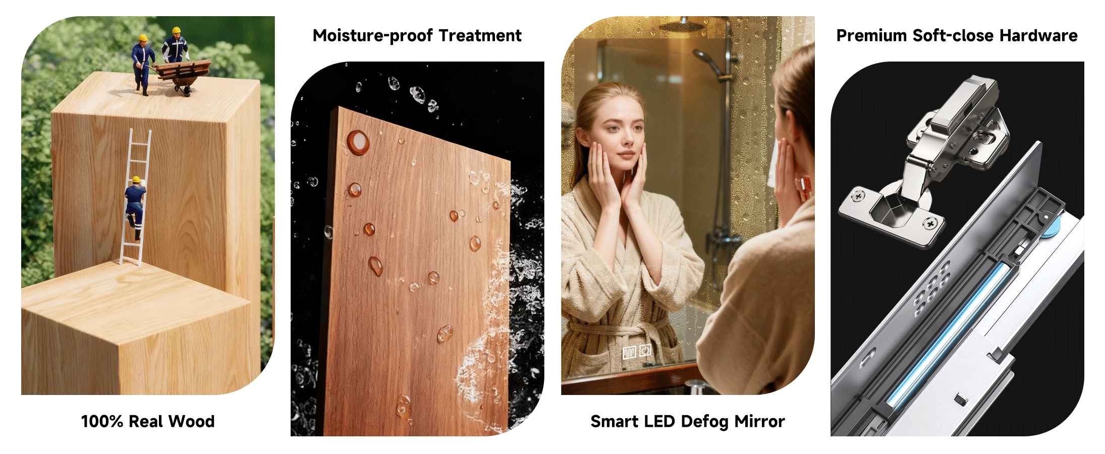 - Minimalist Wood Style:Inspired by the concept of “combining solid wood texture with minimalist luxury design to create a natural and comfortable bathroom space”, we designed this modern bathroom vanity. Centered onwood style, it features natural wood grain and a sleek silhouette – exuding a warm, elegant vibe while fitting seamlessly into retro, modern luxury, and other bathroom decors.